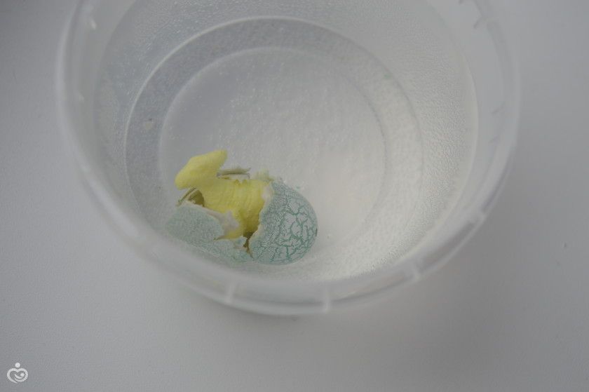 Убрав скорлупки, оставили его ещё немного подрасти, но по-моему он совсем чуть увеличился.