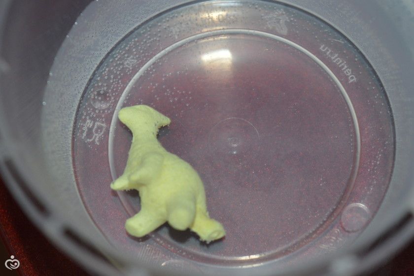 И вот среди Диминых подарков на НГ был небольшой сувенир от моей тёти, Яйцо для выращивания динозавра. Естественно, мы решили его вырастить, делается все элементарно. В холодную воду опускаем яйцо и наблюдаем (3.01).
