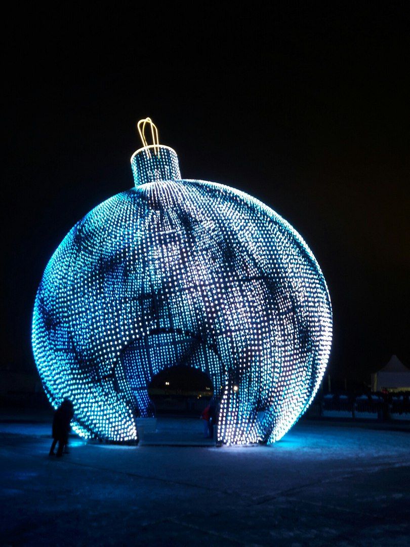 в живую это просто потрясающе… не знаю как тут видео выкладывать… Очень красивый шар… В прошлом году он стоял возле красной площади, а в этом году его перенесли на поклонную гору.Он переливается огнями, рисунками, цветами разными… красотень!