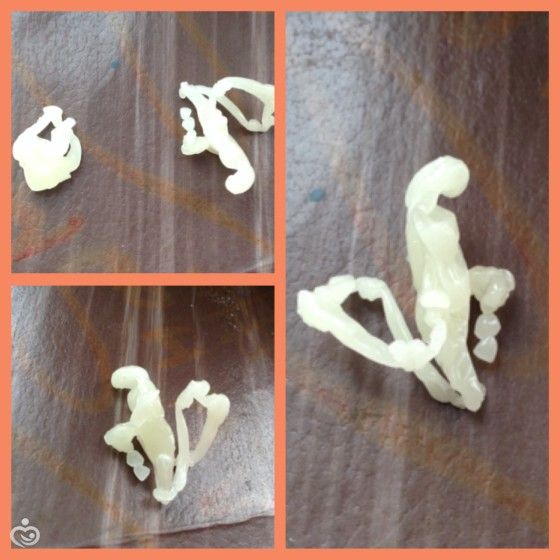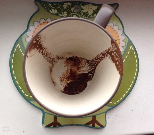 Вчера уже почти под утро решила тоже «погадать», ну так ради интереса) Топила воск и выливала в воду. А сегодня утром кофе выпила и оставила гущу в чашке, но ничего не разглядела в ней)) Но фантазия и вчера не работала, поэтому оставила свои фигурки на сегодня. Но и сегодня что-то ничего не видится… Покажу вам, может разглядите чего))