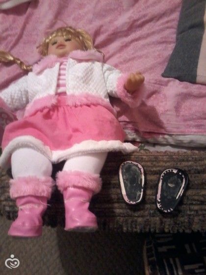 бабушка не расстроилась, наоборот обиделась, что мне кукла не нравится, говорит выкинь сапоги и все, а мне жалко, первая наша дорогая игрушка, за 3 тысячи кукла и выкинуть сапоги, хочется чтоб идеальная она была