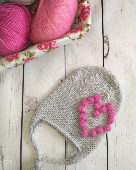 Связалась вот такая шапочка для дочи на весну. Пряжа 100% мериносовая шерсть, а на сердечко добавлена ниточка мохера на шёлке. Могу повторить в любом цвете и размере, с помпоном и без.