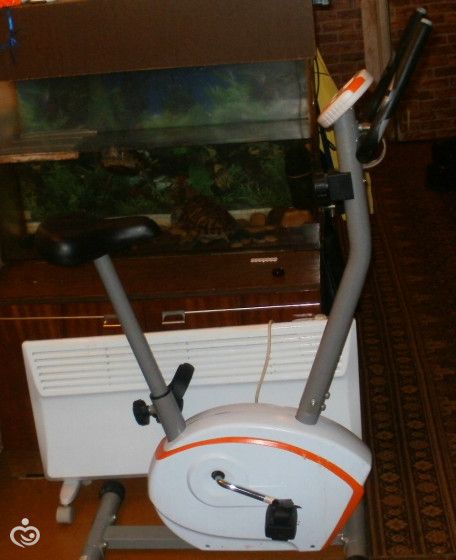 Магнитный велотренажер с 8-уровневой системой нагрузки• Маховик – 3 кг• Максимальный вес пользователя – 100 кг• Габариты (Дл х Шр х Вс), см: 87 Х 45 Х 120• Вес, кг: 17,5• Комфортабельное седло, регулируется по вертикали• Датчики измерения пульса на руле • Транспортировочные роликиКомпьютер: ЖКД, одно информационное окноФункции:- скорость- время тренировки- дистанция- частота пульса- расход калорий- одометр- сканирующий режим – все параметры.В магазинах тренажер стоит от 8000 и выше.Обращайтесь!