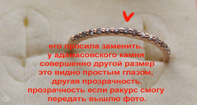 камень который отличается по размеру и цвету — не заметили!!! и не заменили.