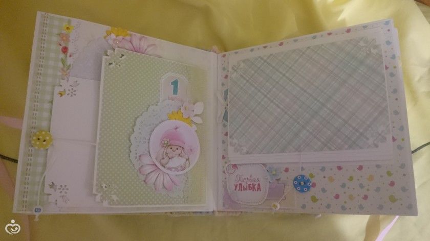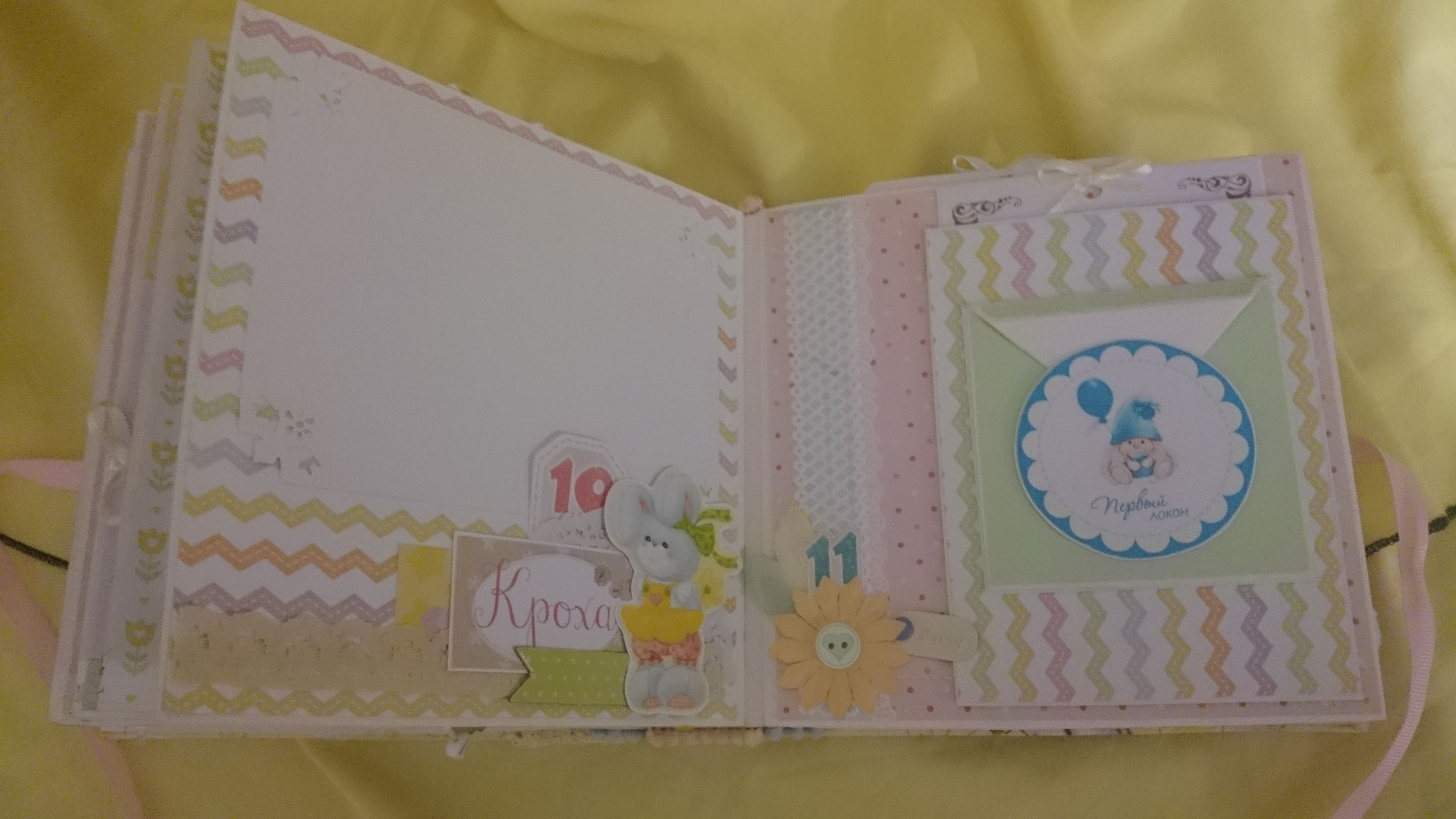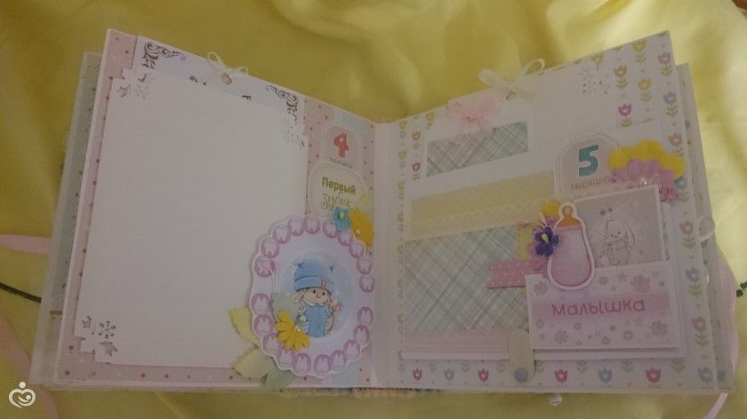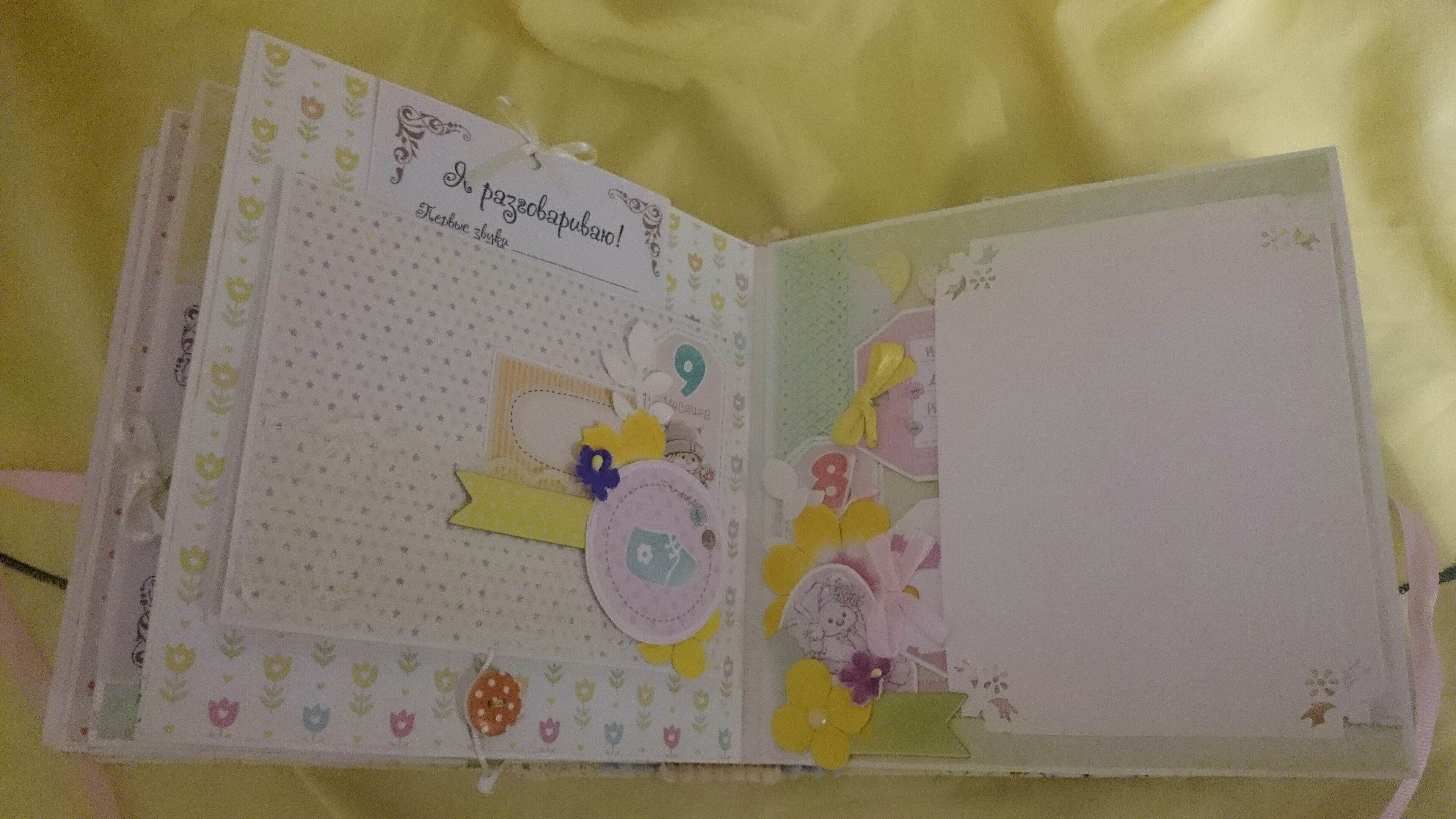 9 разворотов, 18 листов: 50 фото 13:9 см. Альбом от выписки с роддома до первого дня рождения! Размер 16:16 см. Переплёт книжный, обложка тканевая. В конце есть тканевый кормашек для фото.