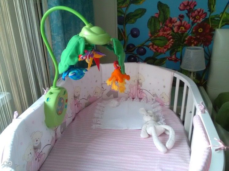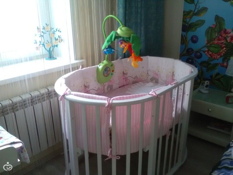 Вот мы и выросли из люлечки. Немного жаль, она очень нравилась и мне и доченьке, но стали мы пытаться вставать, да и ночью тесновато, поэтому поехали вчера с мужем и купили кроватку. Выбирала долго, вообще ничего не нравилось, вот остановились на этом варианте. В последующем она может трансформироваться в диван или в два креслица. Доченька оценила, спала в позе звезды и ничего ей не мешало. Ну Арсюшин мобильной наконец-то повесили, заворожил он ее)))))))