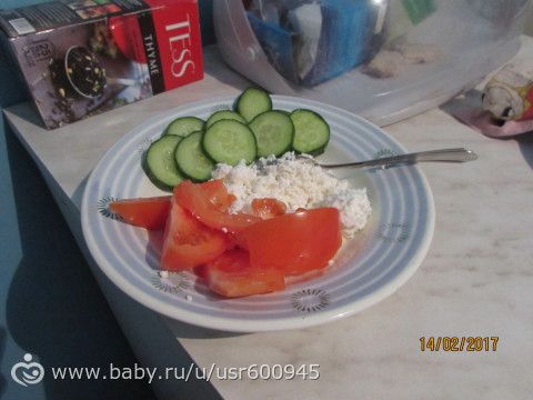 Ужин 18.00 — творог с огурцом и помидором.