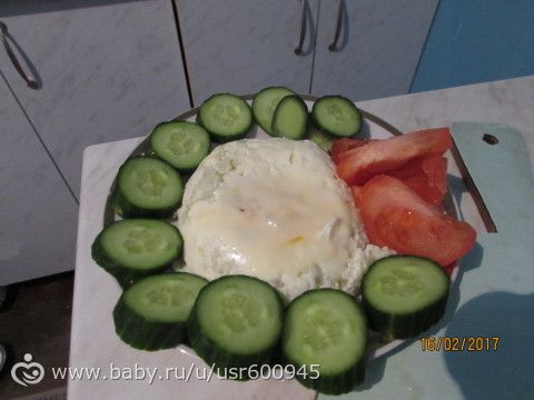 Ужин — не знаю как назвать, толи капусная запеканка, толи омлет с капустой и овощами.
