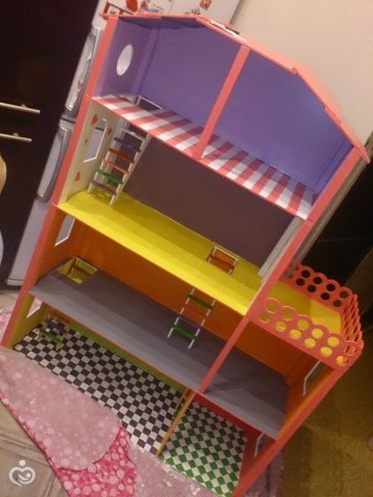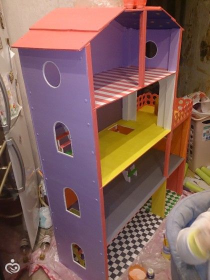 достроили дом для барби!19 февраля 2017 23:15 Каркас делал муж, красили все вместе. Осталось обставить мебелью. Дочка в восторге, да и я наиграюсь)