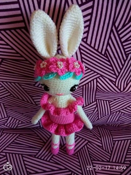 Вот такая зайка-балеринка у меня связалась на подарок к 8 марта)))