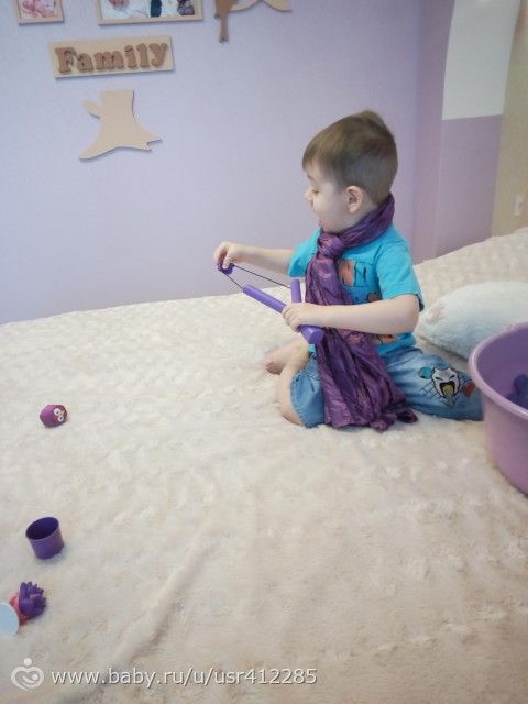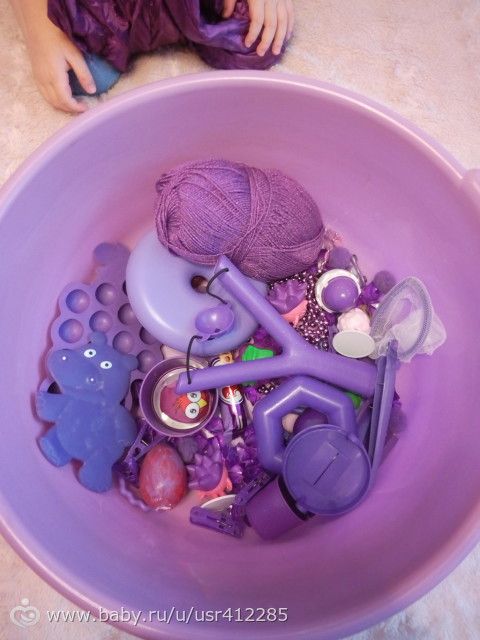 Наступили фиолетовые дни по марафону, я думала у нас будет мало всего так как одежды совсем нет такого цвета.Нашла только свой шарф и повязала его сыну, но он недолго в нём был.В общем вещей было так много, что взяли фиолетовый таз)