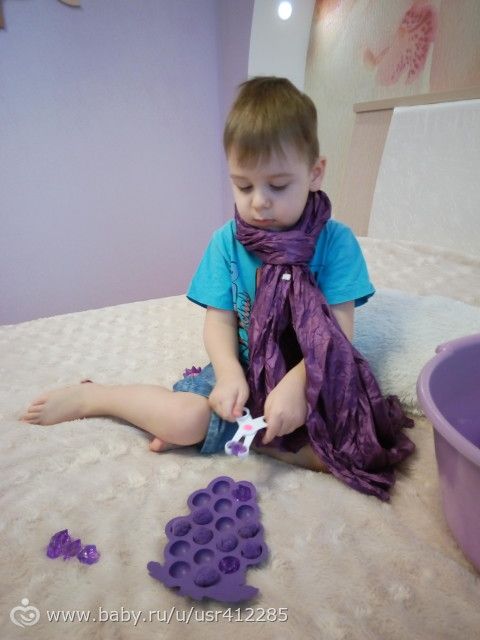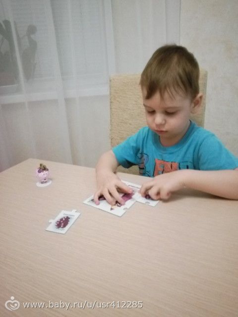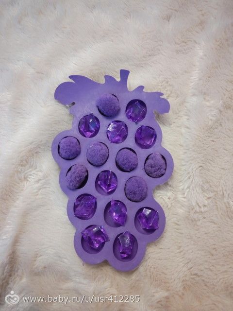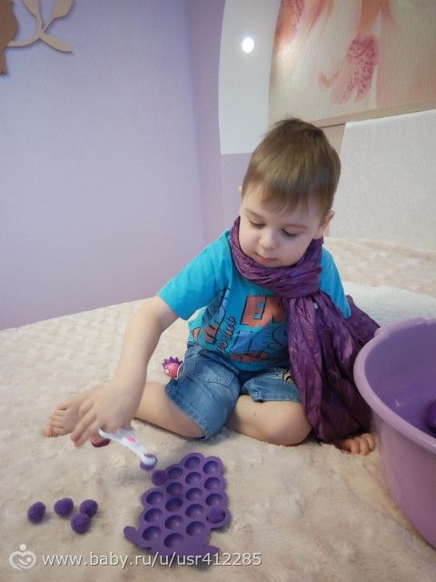 Раскладывал помпоны в формочку, раньше он это делал руками, а сейчас усложнила задачу.Ещё помпонов у нас мало и я дала ещё камушки