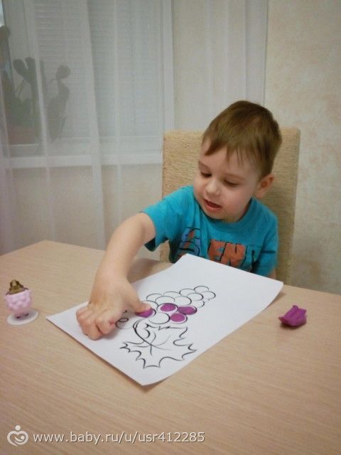 А чтобы ребёнок не выходил за края я прикладывала лист и закрывала то что не нужно красить.Ещё прилепляли пластилин на рисунок