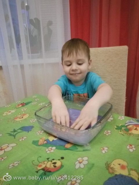 И потом я решила сделать ньютоновскую жидкость, сначала она сына заинтересовала