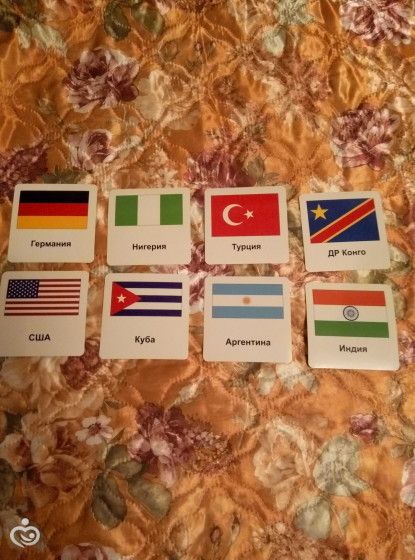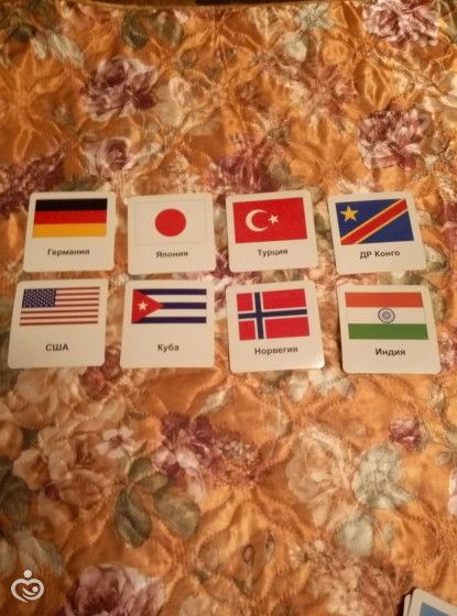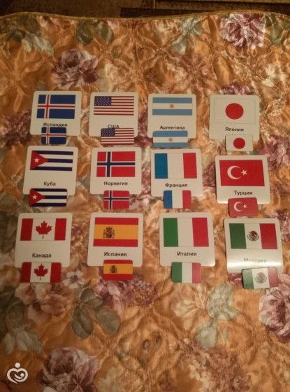 Сразу хочу сказать, не преследую цели выучить с ребенком название и обозначение всех флагов. Для меня этот комплект — отличное пособие, позволяющее развивать мышление, логику и внимание.