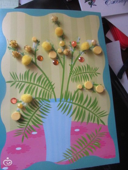 Аня сделала на 8 марта подарки для бабушки и Вероники, из книжки «Подарки. Вырезаем и складываем без клея» — нарцисс и спираль с бабочками.