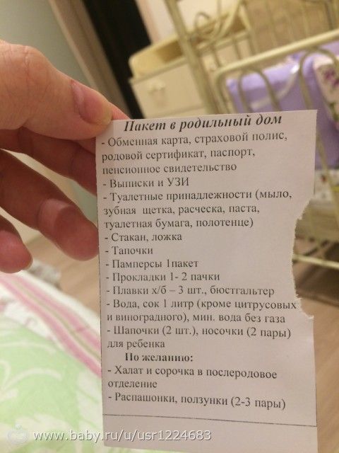 На самом деле, лучше смотреть на сайте РД. Есть что то что они разрешают брать, что-то нет. А так, личная гигиена для вас+ послеродовые принадлежности. Одежда: то в чем будете ходить до/ после родов. Лекарства, документы. Подгузы для ребенка, минимальный набор одежды на ребенка. Все. Остальное если что вам либо дадут, либо привезут. Вы там не на месяц от силы дня 4 — 10 после родов.