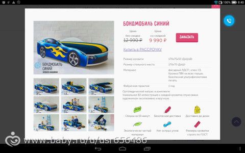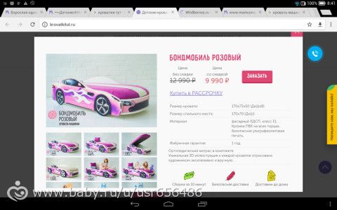 Есть такая, только матрас выбирайте хороший… у нас давно уже… фары светились — отлетели уже, остальное нормально… держится, иногда вдвоем с ребенком ложусь на нее пока укладываю