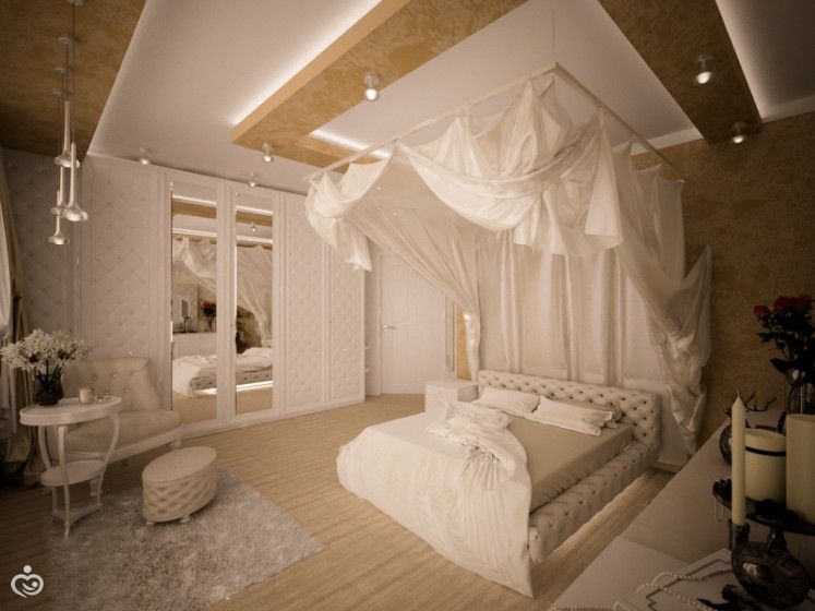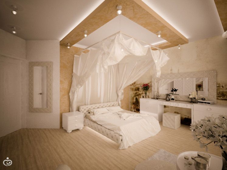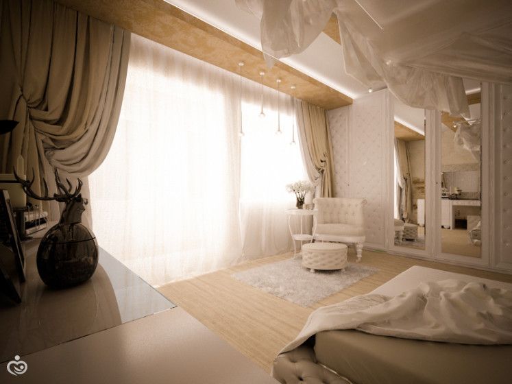 балдахин над кроватью — явный перебор, и мне не понятно зачем нужны подвесы у окна.