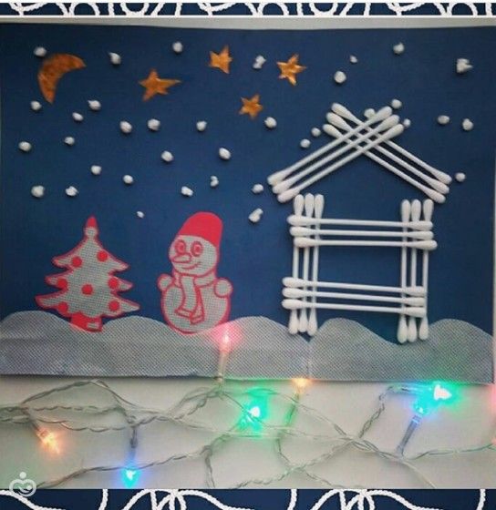 Снежинка из подручных материалов ( у нас ватные палочки).