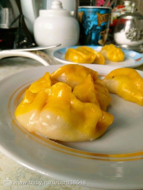 рецепт теста здесь.только вместо шпината куркума как краситель, развела пол чайной ложки в теплой воде и добавила пару капель лимонного сока и все.https***:// начинкак самая обычная: картошка 2 штуки средние сырые небольшими кубиками, зеленый лук, прям чуть-чуть перца чили.можно без него и пол чайной ложки устричного соуса, можно соевый.можно посолить и растительное масло. начинка на ваш вкус.у нас пост, поэтому так.дети макали в сливочное масло.а мы в соевый соус с зеленым луком.муж одобрил.