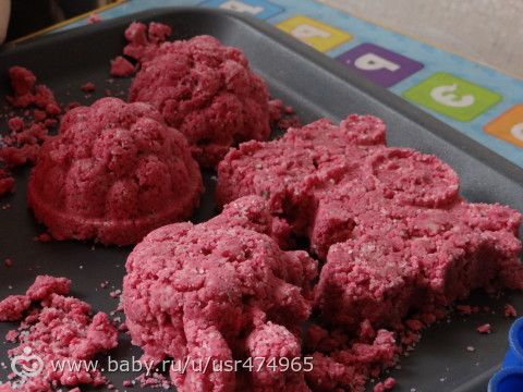 У нас из серии ожидание-реальность. Делала тесто, на зеленый цвет соли хватило, а красный взяла морскую.Получился марсианский космический песок