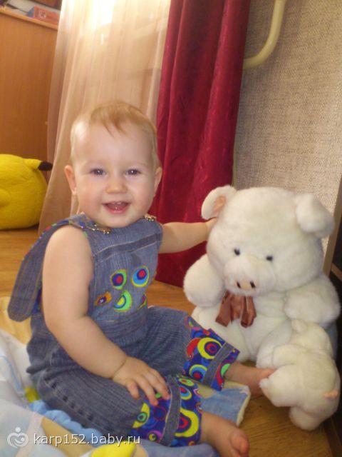 Вот и нам завтра 9 месяцев!!! Пролетело время не заметно!!! Сходили к врачу на плановый осмотр. Вес 9900гр. рост 75см. Мы умеем сами хорошо сидеть, ползать, вставать, ходить у опоры и за одну ручку. 6 зубиков. Говорим только слогами, но все так же без смысла, просто лепет.Понимает где мама и где папа, приползает если позвать и играет в ладушки. Кушает прикорм три раза в день, а в остальное время титю.