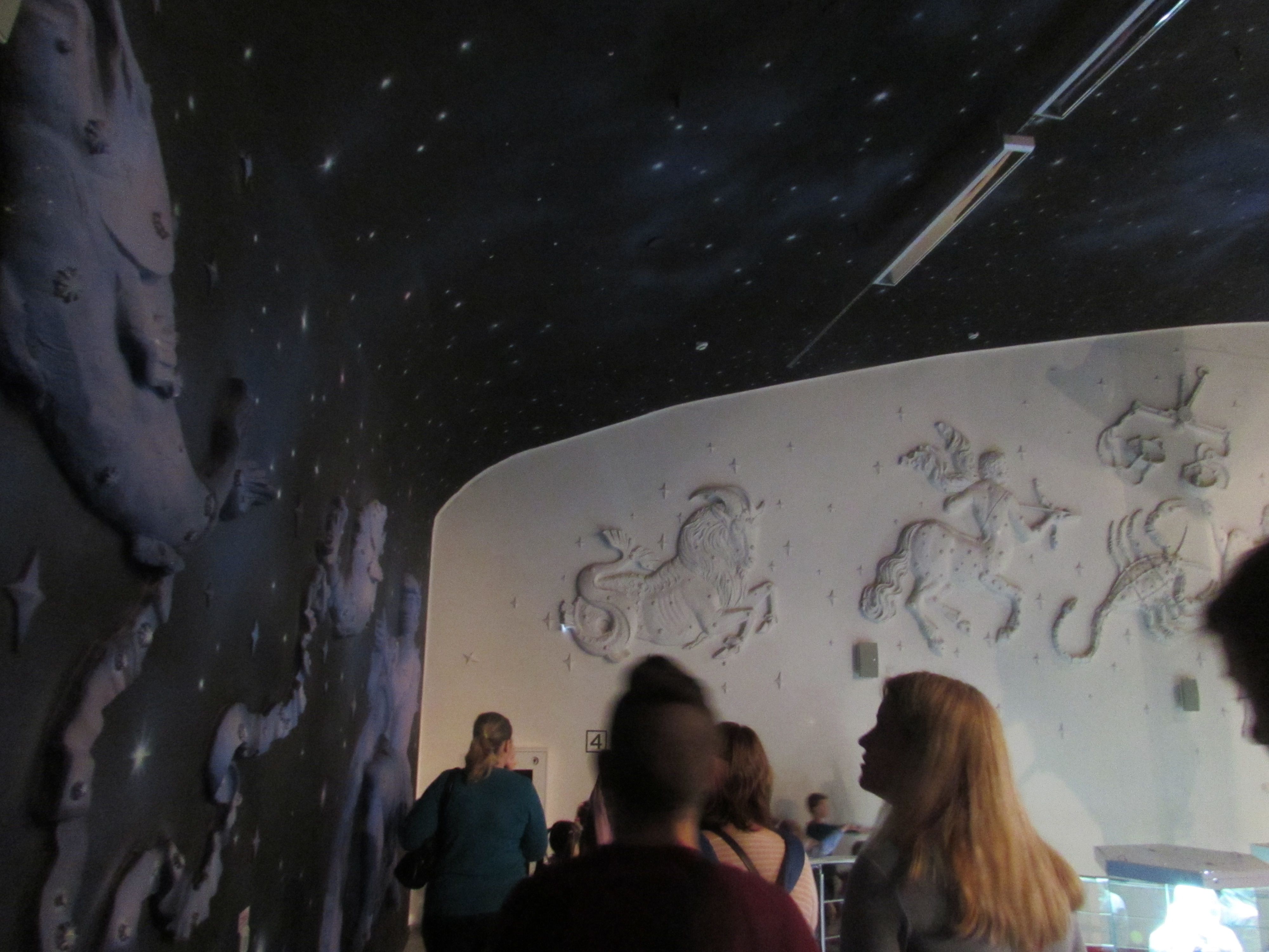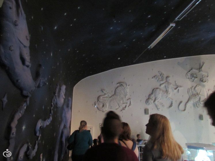 Начну с того, что мне очень понравилось оформление музея. Оно, конечно, посвящено космосу, развитию представлений человечества об его устройстве. В фойе