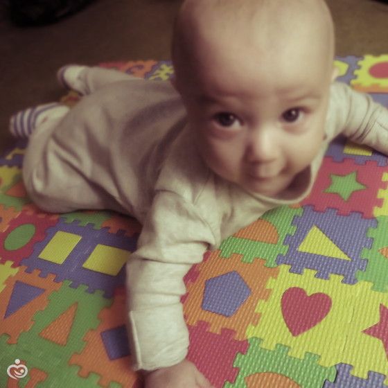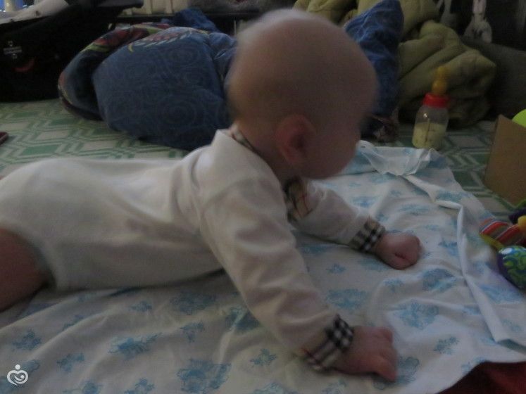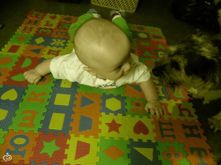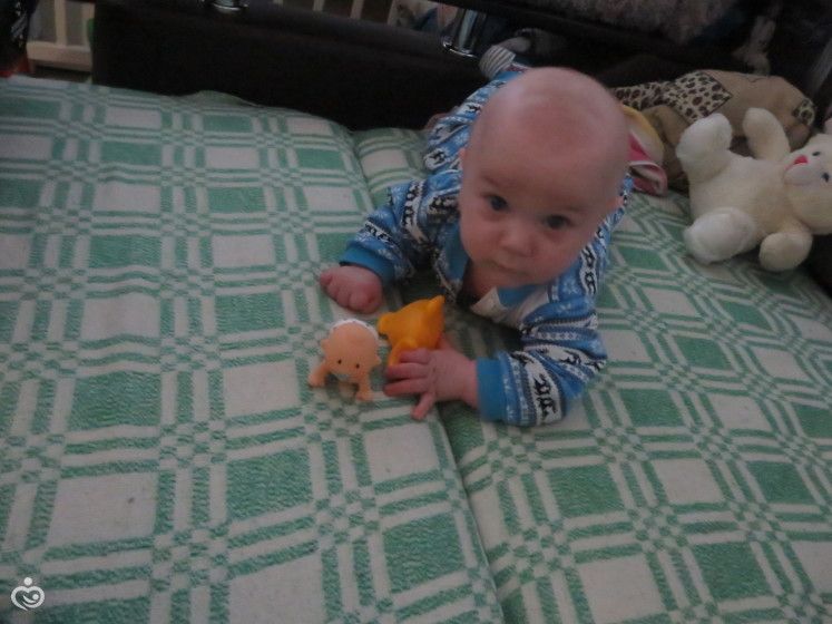5) когда лежит на животике пытается ползти до игрушки дальней