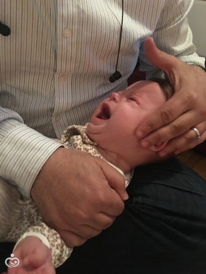 Терапевт пришел в 9:15, ушёл в 10 утра. Как только он ушёл малышка покушала ( до этого нельзя кормить, иначе сблюет), и в 10:30 мы с ней опять пошли спать и проснулись только в 13:30. Не знаю, то ли от стресса, то ли от пасмурной погоды.