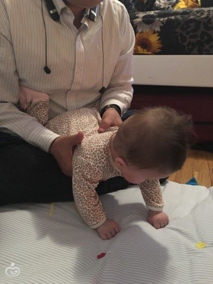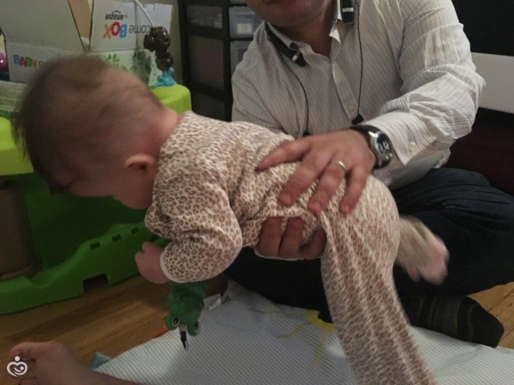 Моей малышке назначили ЛФК, теперь 2 раза в неделю к нам ходит терапевт, который занимается с дочкой! Как она бедняжка плачет! Но быстро успокаивается, моя маленькая, терпеливая девочка! Я сижу рядом и ней и стараюсь ее развлечь-отвлечь, привлекая все свои возможности — и пою и кривляюсь, и даже зову собаку! Вот пару позиций, в которых нужно держать малыша, чтоб укрепить и растянуть мышцы, у нас ещё была кривошея, вроде прошла, но упражнения все же делаем! Хочу начать ходить с ней в бассейн !