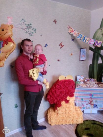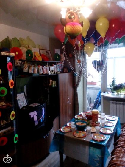17 апреля нам исполнился годик! А отмечаем только сегодня.Очень долго мы его ждали, готовились, нервничали.Я даже случайно разбила свадебный бокал сегодня, очень расстроилась(((Но в итоге всё прошло отлично, почти так как я и планировала! Именинник правда захотел спать, пришлось сварачивать праздник.Гости ушли, а я решила с вами поделиться кусочком нашего праздника, пока мой мужчина спит у меня под бочком)))Приехала свекровь с Новороссийска, мои родители и бабушка пришли, крёстные, подруги с детьми.Мы сделали конкурсы, посмеялись, поели чудесный тортик.Сыну надарили кучу подарков!!! Очень ему понравились шарики))Украшения я делала 2 месяца по немногу, но всё успела))В общем, так ждали этот праздник, а он пролетел в одну секунду((((