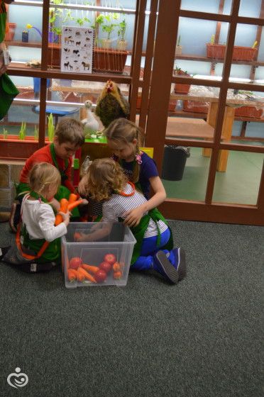 Вспомнили, что любят есть кролики, отсортировали для них яблоки и морковку, покормили.