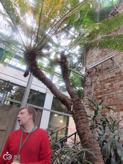 Самое старое дерево в оранжерее — саговник, которому 250 лет (на нем подвесили его шишку, которая появилась несколько лет назад, кажется, чуть ли не впервые за все время его жизни).