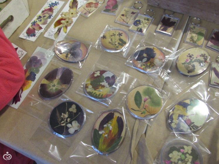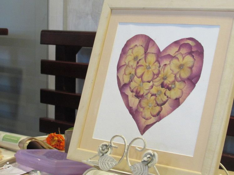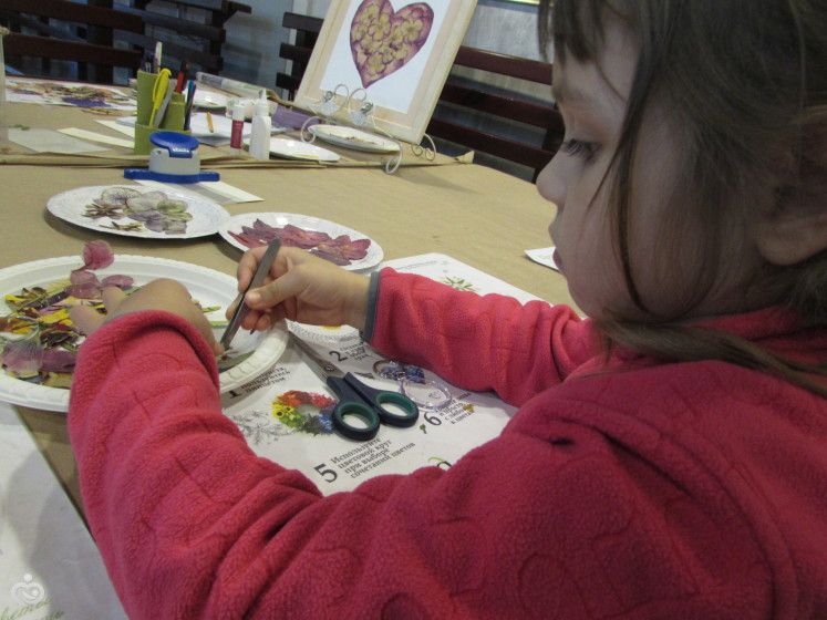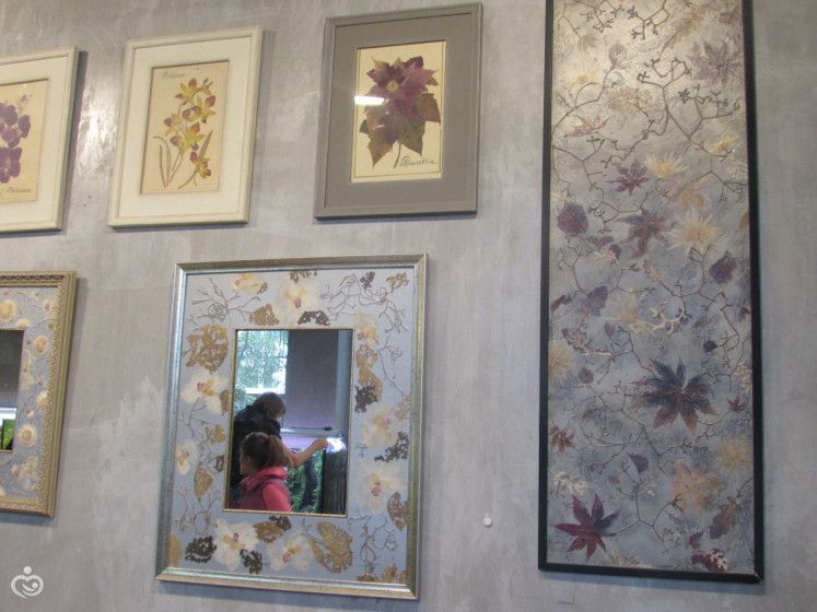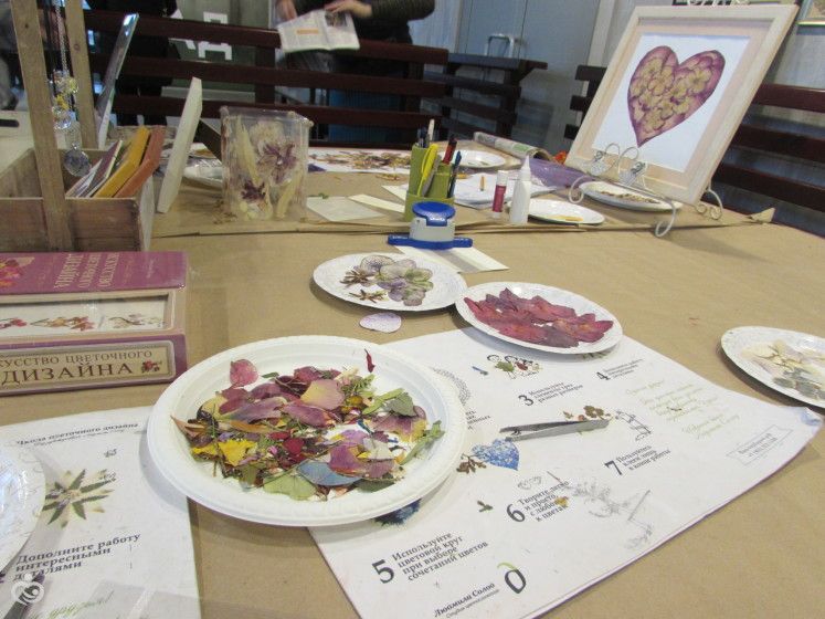 После выставки мы пошли еще раз в Пальмовую оранжерею, чтобы сделать поделку из засушенных цветков и др. частей растений. Это японское декоративно-прикладное искусство, названия не запомнила, к сожалению. Можно купить готовое изделие или сделать самом (магнит, брелок, открытку или закладку).