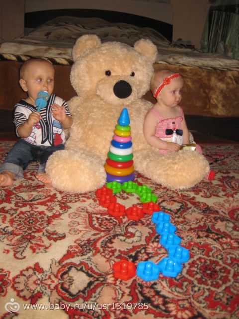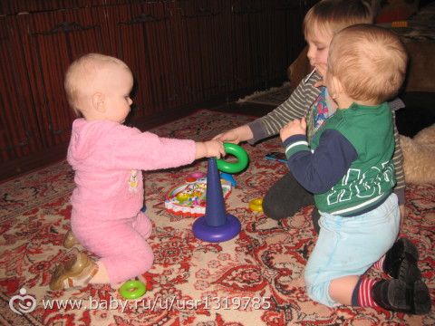 Детки стали играть вместе, насколько это возможно в из возрасте, да и старшему с ними интересно уже становится. Умеют строить пирамидки с кубиков, конструктор соединяют, складывают пирамидку не по порядку. Да много всего, но уже как-то и не припомню всего.