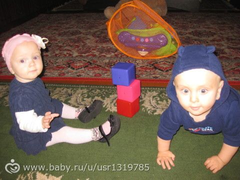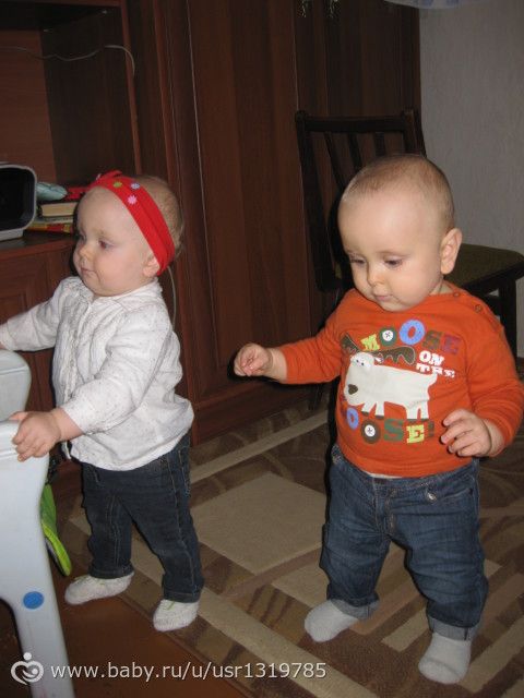 Этот месяц пока для меня стал самым тяжелом в жизни с двойней. А все дело в том, что мы весь (!!!!) месяц болели. 2-3-здоровы и опять по новой. Это ужас. Чего у нас только не было. Но не буду описывать подробности. Я человек позитивный и мне пришлось пить успокоительные, чтоб не сойти с ума от нервов… В придачу еще и невролог не обрадовал. У дочи гипотонус ножек. Назначил смт и массаж. Первого успели половину сделать и заболели, на массаж попали лишь после года, когда все болезни отболели. На прием мы не ходили, поэтому замеров не будет. Единственное ездили в платную клинику, в 11,5. Там были: сын 12 кг, дочь — 10 кг. Исхудали. Несколько фоток. А следующий пост будет о нашем годике, к которму я так долго готовилась. Не пропустите :)0)