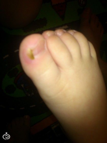 Это не мазоль, так как новую обувь не носили и не вросший ноготь.К врачу пойдем завтра.Переживаю, может было такое у кого-то.