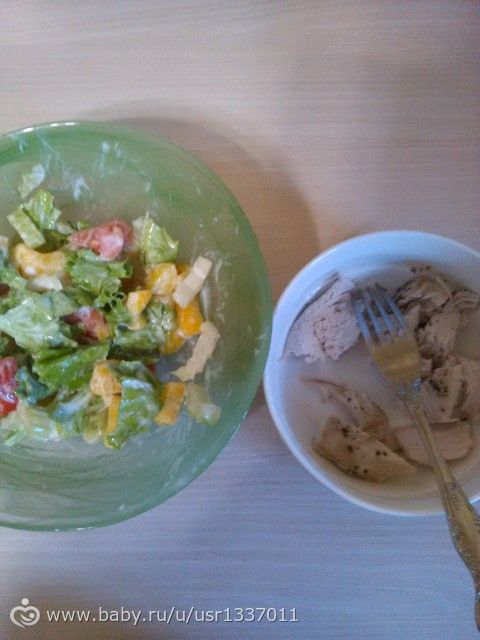 18:30 запеченная куриная грудка 50 гр, салат из половинки помидора, половинки перца, сельдерея 50 гр, салата с активией термостатной 1 ст.л.
