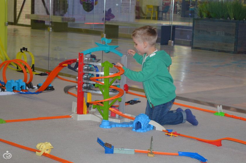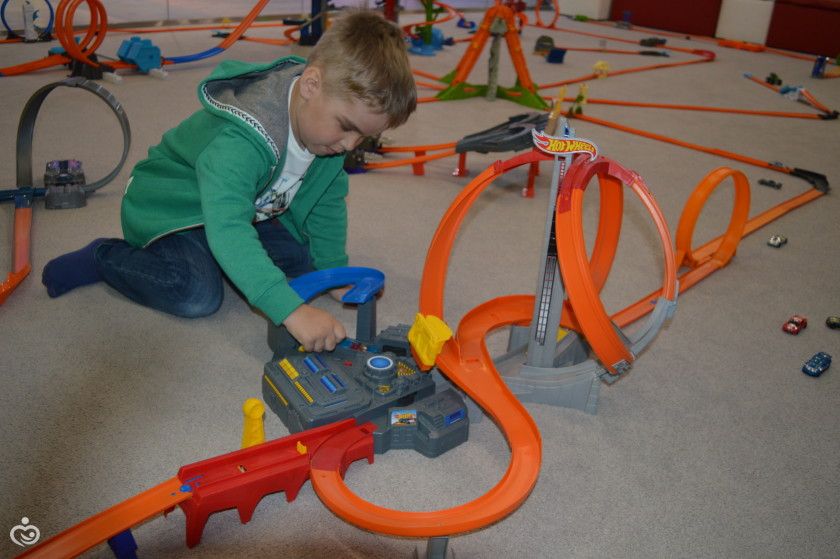 Дальше мы решили поиграть в машинки Hot Wheels, которые сын обожает. В прошлом году мы побыли на игротеке " Музераж", посвещенной этим же машинкам