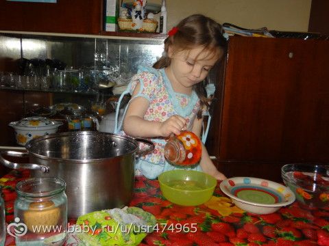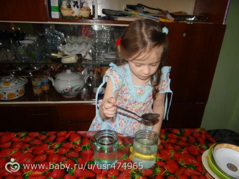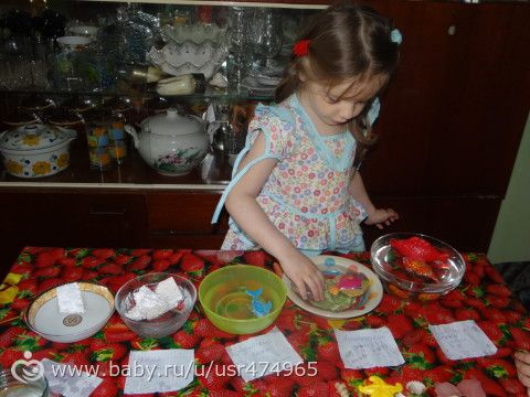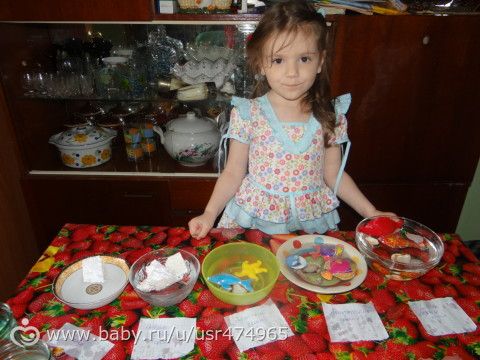 Разливала воду по океанам, разного размера тарелкам. Самый большой у нас Тихий, поменьше Атлантический