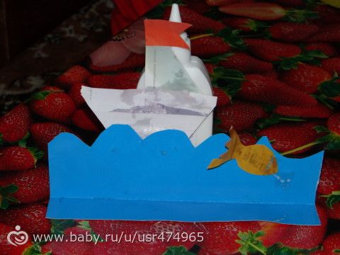 По морям и океанам бороздят корабли. Быстренько соорудили кораблик из куска пенопласта и палочки для суши