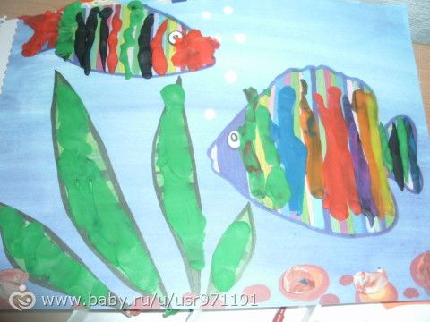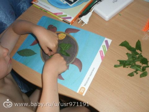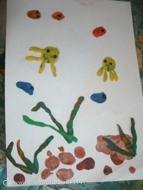Сыну так понравилась морская тема занятий, что он потом еще неделю просил творчество по этой теме. Сделал такую картину из пластилина