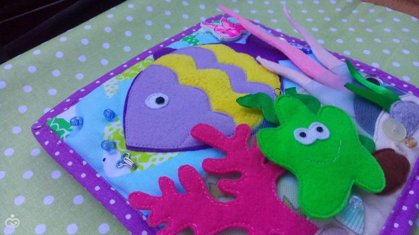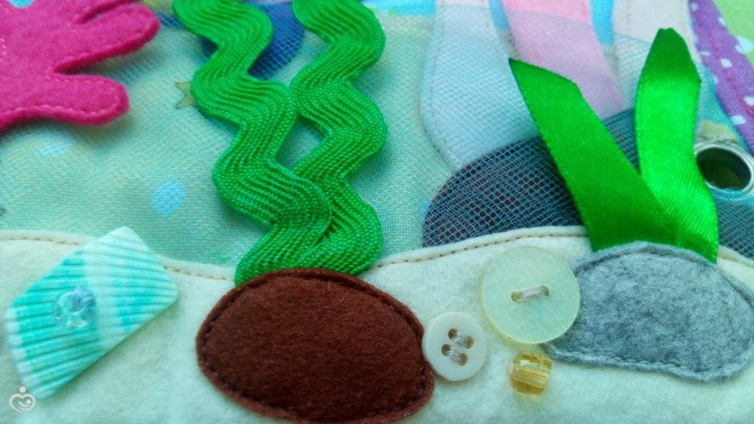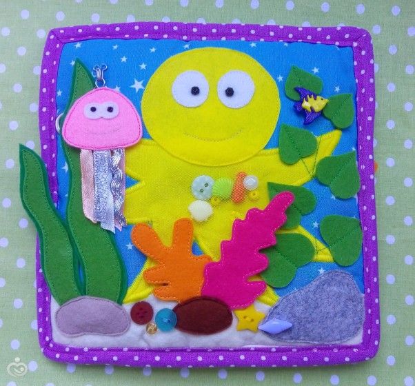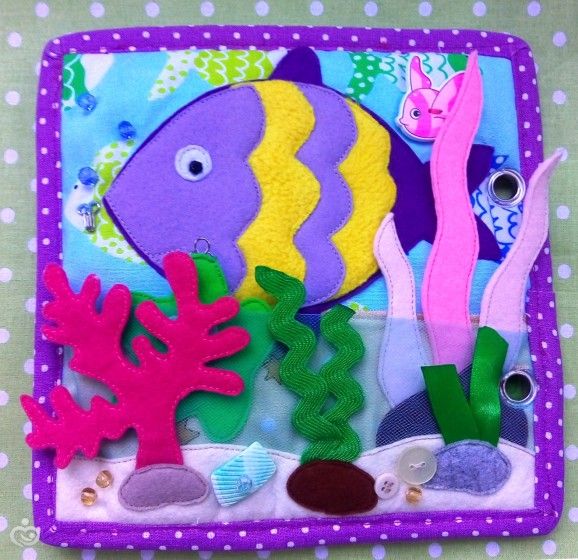 Мой любимый «водоем»:) Море-море:) Рыбка из чередующихся фетра и флиса, разные материалы мелкие крючки-пуговки, все работает на развитие мелкой моторики.