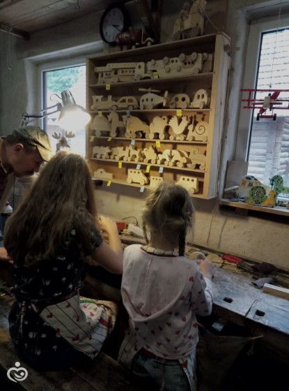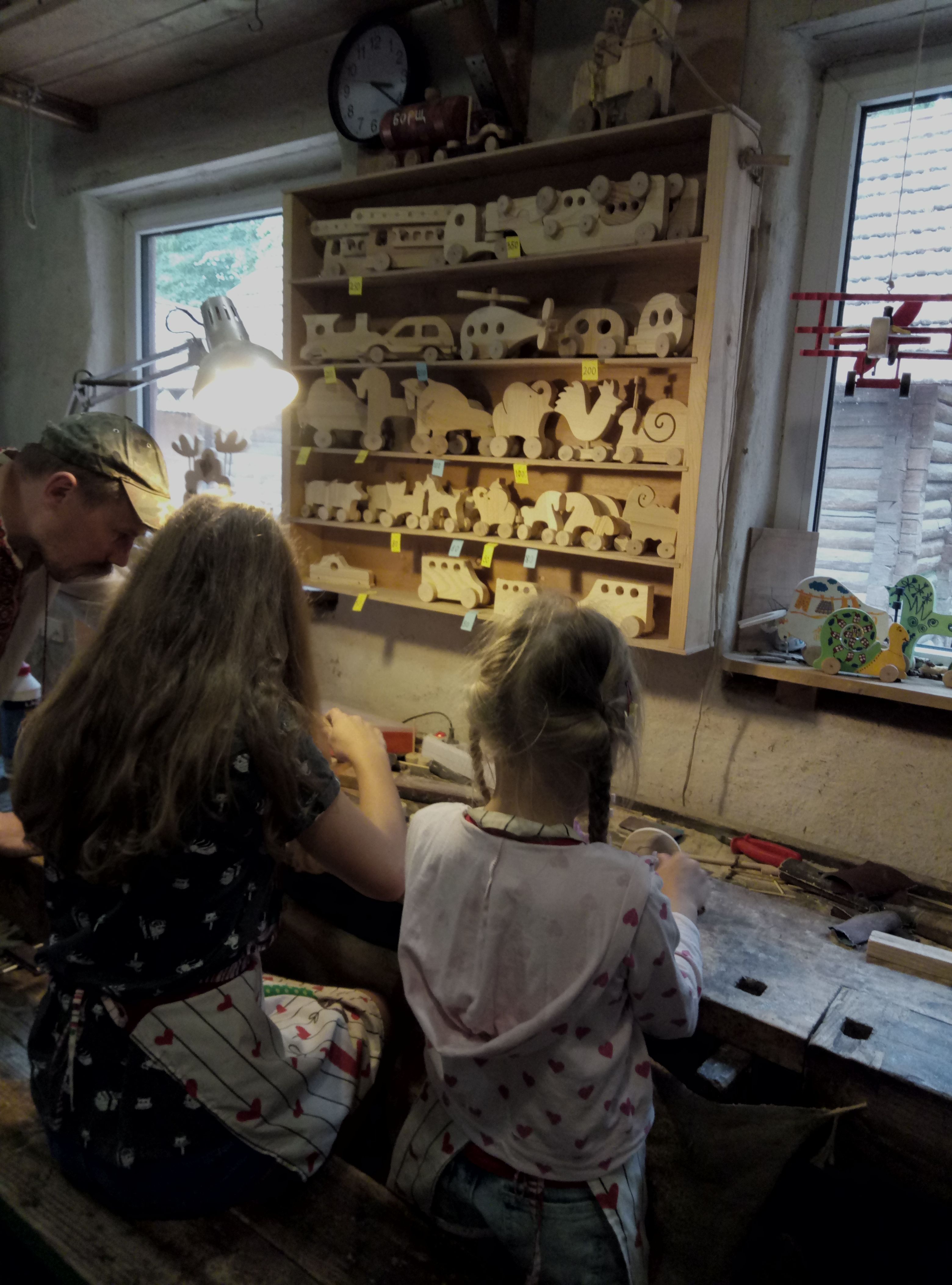 улочка ремесел. Здесь можно попробовать себя в гончарном деле и сделать тарелку, кузнечном — создать подкову, купить хлеб из настоящей печи, увидеть производство кобзы, бандуры, лиры и сделать деревянную игрушку. Есть домик с разными мастер-классами, расписание на месяц висит, есть бесплатные.