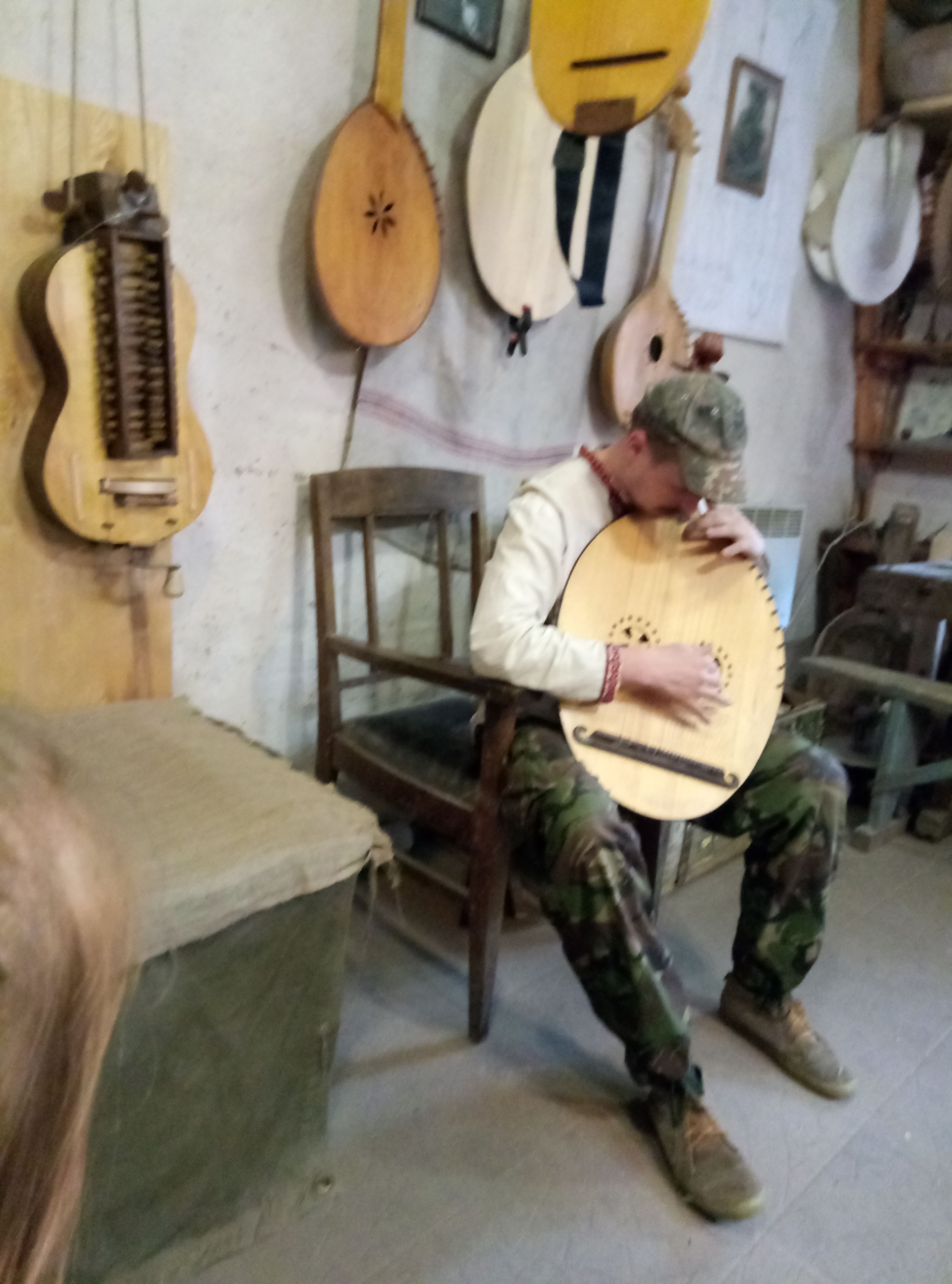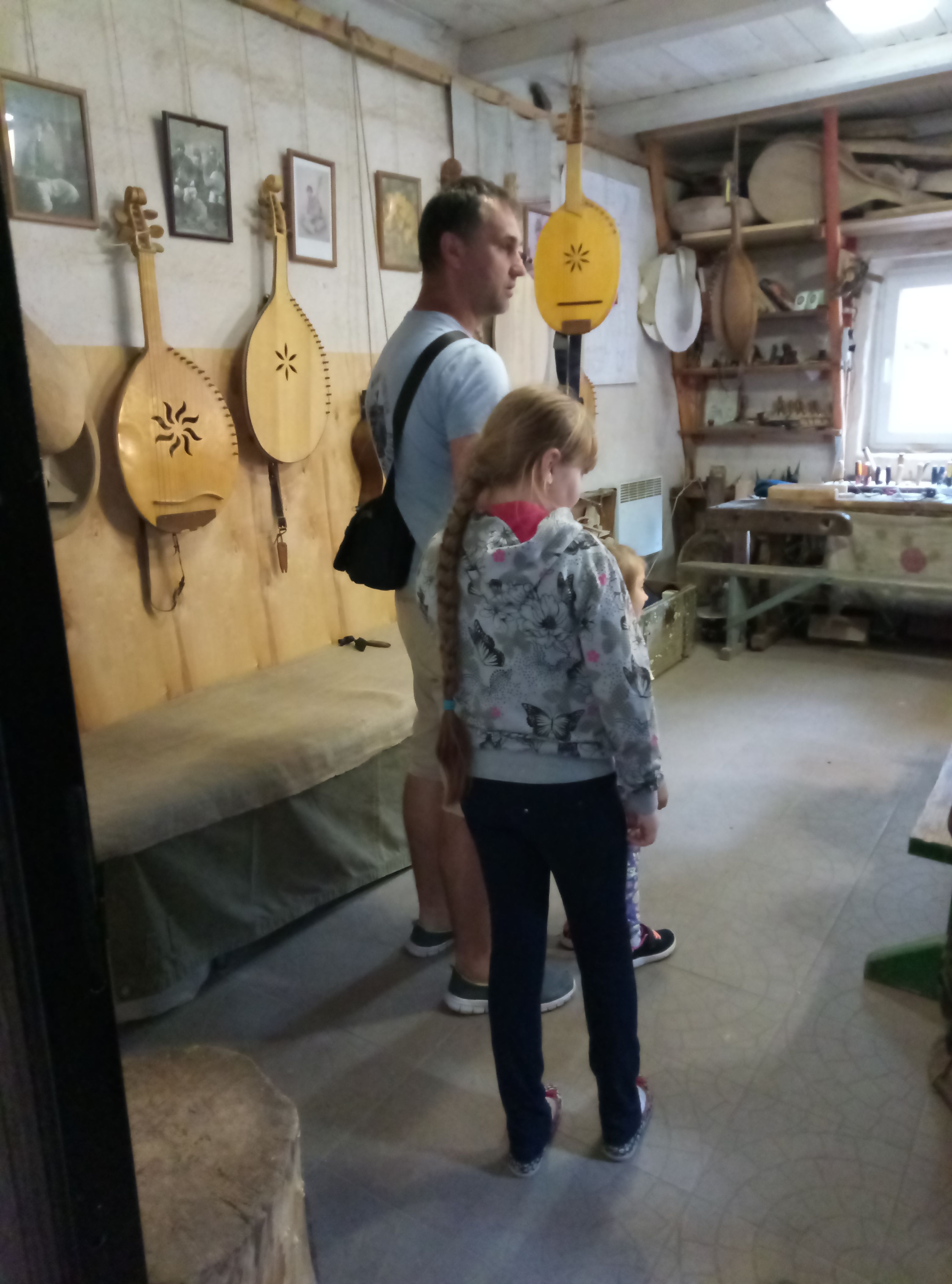 В домике, где делают кобзы, нам рассказали про инструменты и даже сыграли на бандуре. Какое обалденное звучание, вам не передать