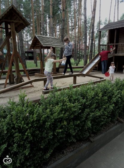 Несколько детских площадок.одна деревянная. Девочки немного погуляли.