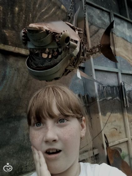 На обратном пути заехали в кузнечный дворик, как раз было открыто. Только Андрюша спал и я осталась в машине. Вот что Дарина нафоткала