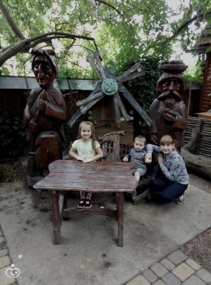 так же на територии есть 6 хат разных регионов Украины, посещение детям до 6лет бесплатно, старше 5грн/хата, проводят экскурсию. Мы пока их не посещали, времени было мало, папа спешил на работу.