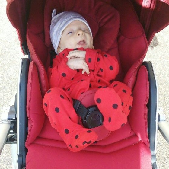 Вот уже и 68 размер, который изначально предполагался на вырост, почти как раз! До чего быстро летит время. Такую божью коровку успели прихватить с распродажи =)